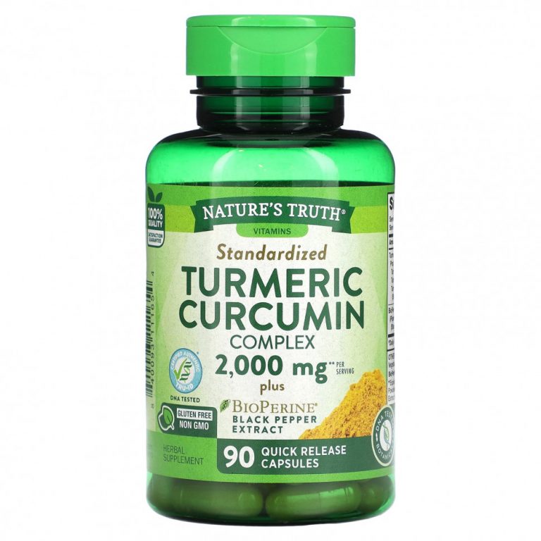 Nature’s Truth, Куркума, комплекс куркумина и экстракт черного перца BioPerine, стандартизированный, 1000 мг, 90 капсул с быстрым высвобождением