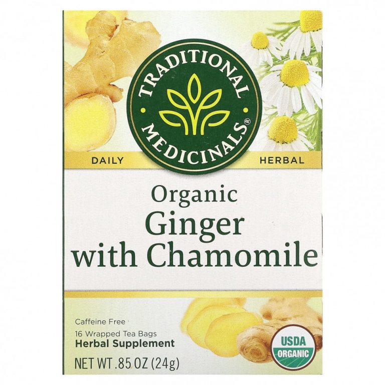Traditional Medicinals, Herbal Teas, органический имбирь с ромашкой, без кофеина, 16 чайных пакетиков в упаковке, 24 г (0,85 унции)