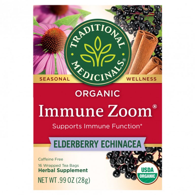 Traditional Medicinals, Organic Immune Zoom, Elderberry Echinacea, Caffeine Free, 16 Wrapped Tea Bags, 0.06 oz (1.75 g) Each