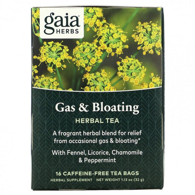 Gaia Herbs, травяной чай для облегчения эпизодического газообразования и вздутия живота, без кофеина, 16 чайных пакетиков, 32 г (1,13 унции)