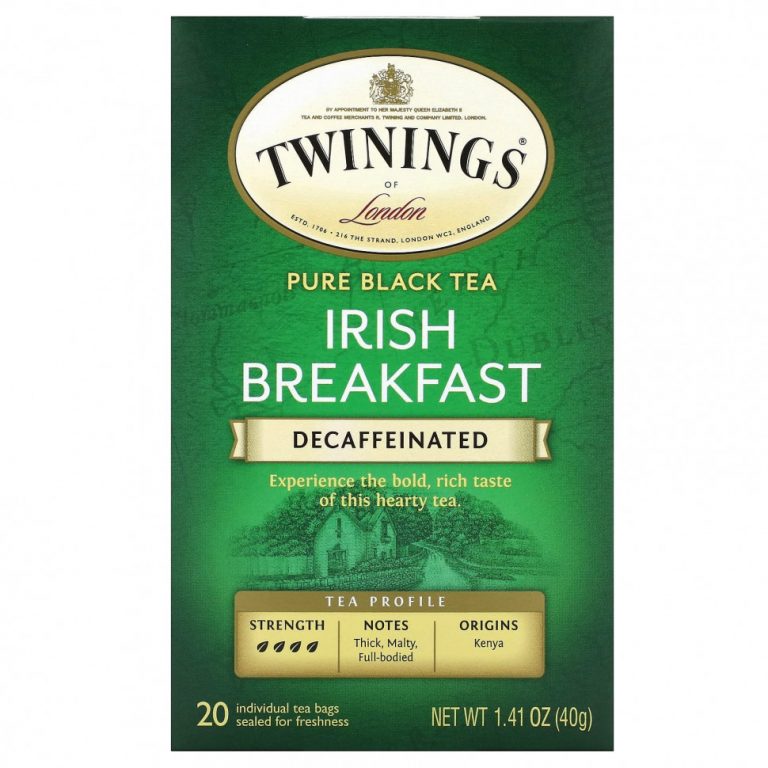 Twinings, Чистый черный чай, ирландский завтрак, без кофеина, 20 чайных пакетиков, 40 г (1,41 унции)