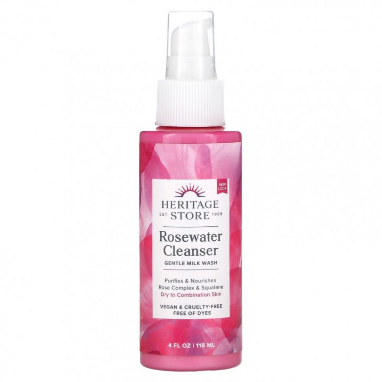 Heritage Store, Очищающее средство с розовой водой, для сухой и комбинированной кожи, 4 жидк. Унции (118 мл)