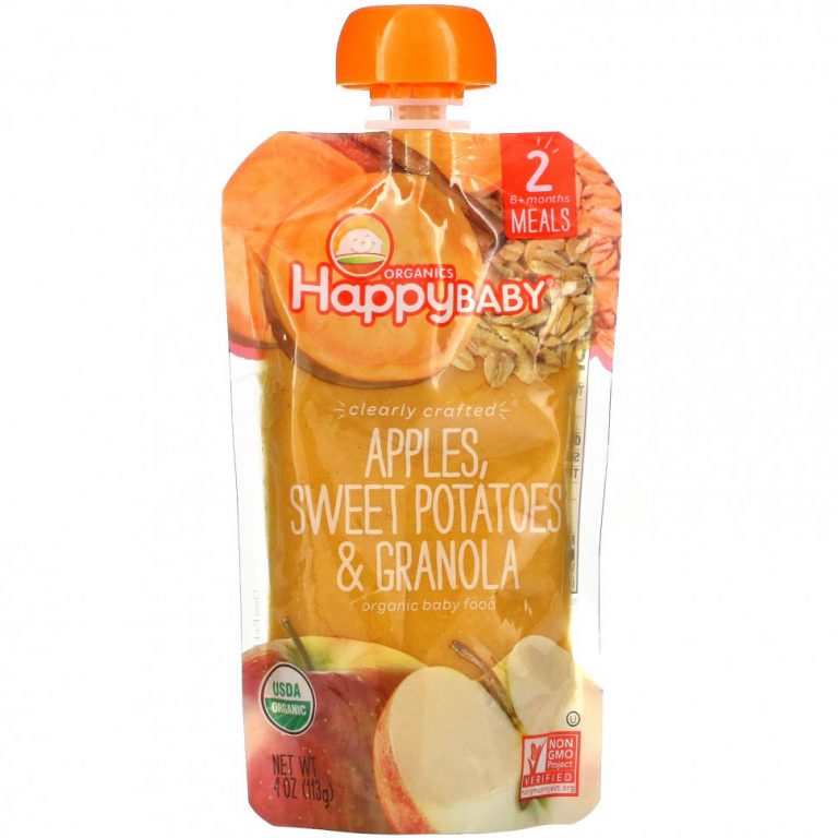 Happy Family Organics, Happy Baby, органическое детское питание, этап 2, яблоки, батат и мюсли, 113 г (4 унции)
