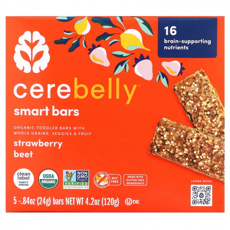 Cerebelly, Smart Bars, Organic Toddler Bars, Strawberry Beet, 5 Bars, 0.84 oz (24 g) Each