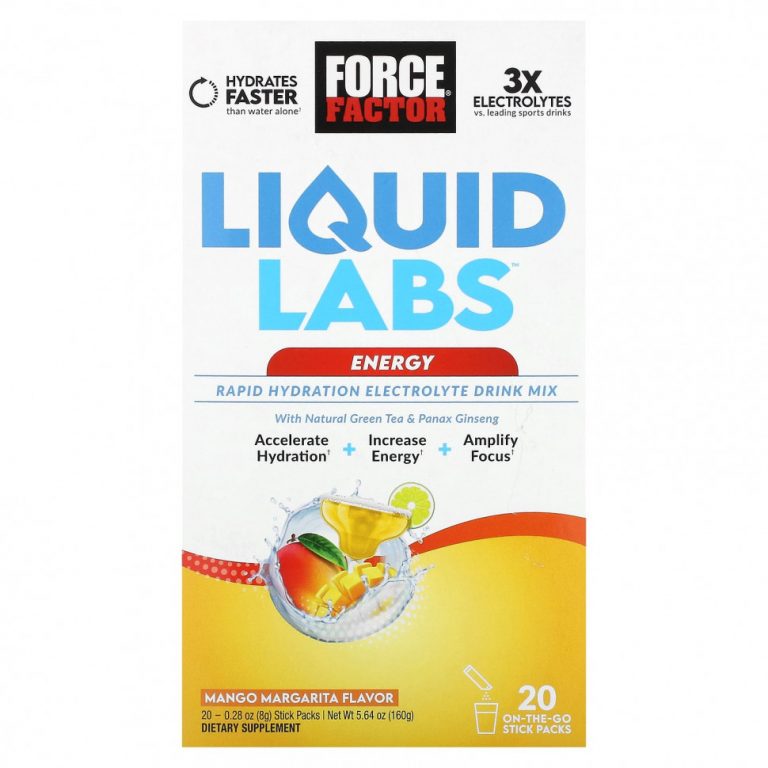 Force Factor, Liquid Labs, Energy, манго и маргарита, 20 пакетиков по 8 г (0,28 унции)
