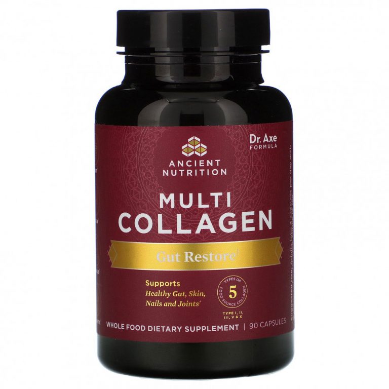 Dr. Axe / Ancient Nutrition, Смесь коллагена разных типов для восстановления пищеварения, 90 капсул