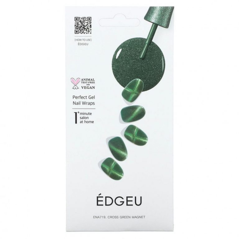 Edgeu, Гелевые обертывания для ногтей Perfect, ENA719, с зеленым магнитом, набор из 16 полосок