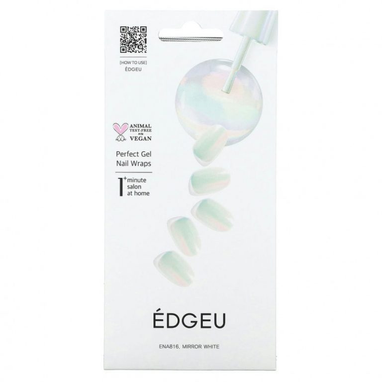 Edgeu, Гелевые обертывания для ногтей Perfect, ENA816 Mirror White, набор из 16 полосок