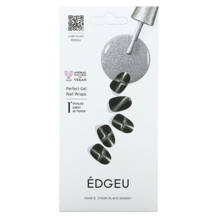 Edgeu, Гелевые обертывания для ногтей Perfect, ENA916, черный магнит, набор из 16 полосок