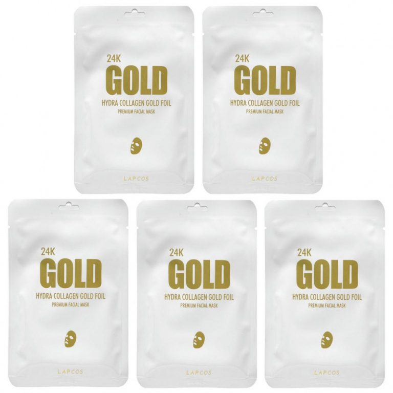 Lapcos, 24K Gold Hydra Collagen Gold Foil, косметическая маска для лица премиального качества, 5 шт., 25 г (0,88 унции)