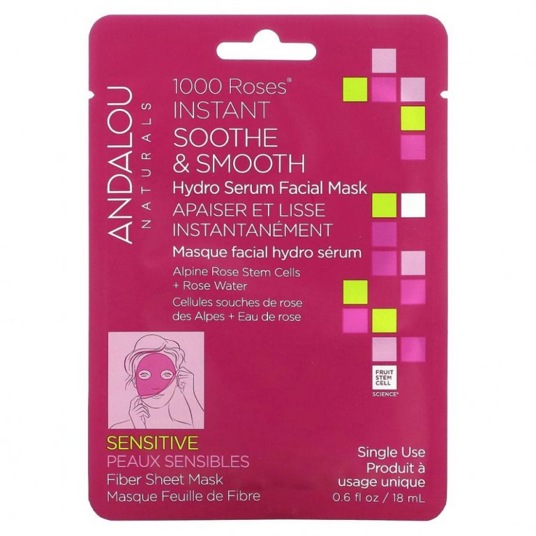 Andalou Naturals, Instant Soothe & Smooth, увлажняющая косметическая маска для лица, 1000 роз, 1 тканевая маска, 18 мл (0,6 жидк. Унции)
