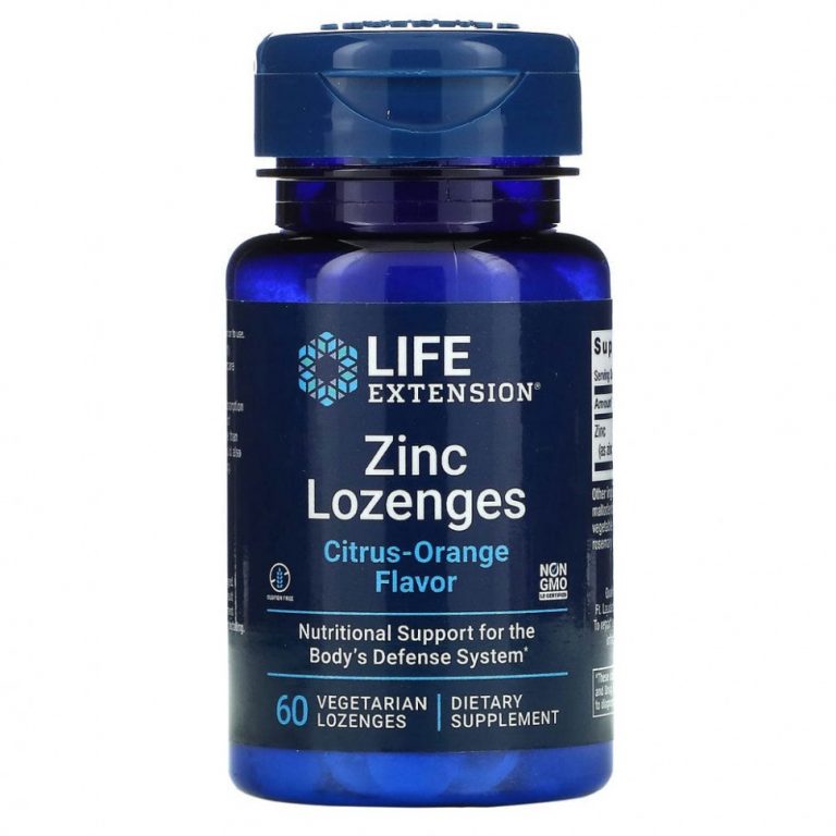 Life Extension, Пастилки с цинком, цитрусово-апельсиновый вкус, 60 вегетарианских пастилок
