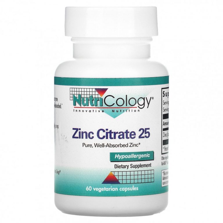 Nutricology, цитрат цинка, 25, 60 вегетарианских капсул