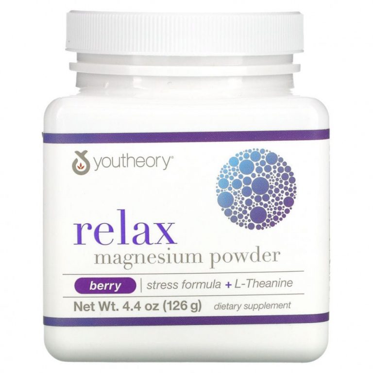 Youtheory, Relax, магниевый порошок, формула для снятия стресса + L-теанин, вкус ягод, 126 г (4,4 унции)
