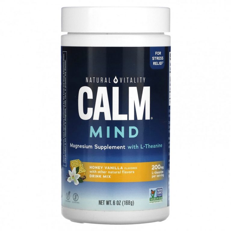 Natural Vitality, CALM Mind, добавка с магнием и смесью для напитков с L-теанином, мед и ваниль, 168 г (6 унций)
