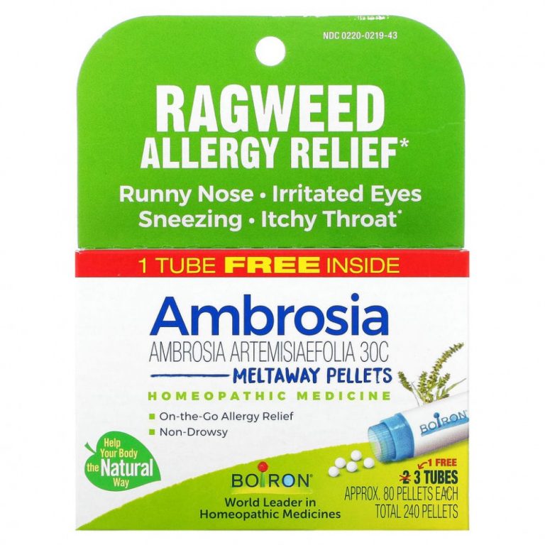 Boiron, Ambrosia, Allergy Relief, Meltaway Pallets, 3 Tubes, 80 Pellets Each