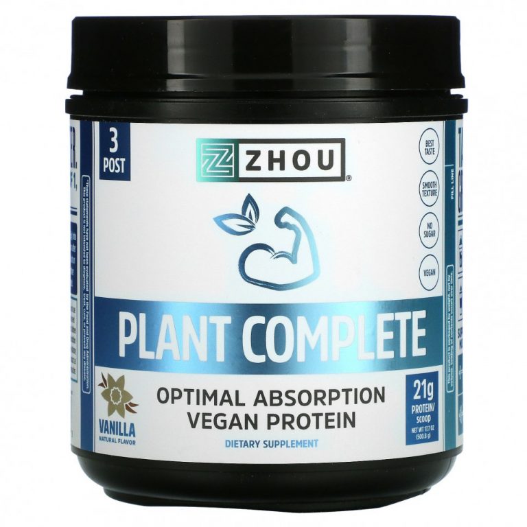 Zhou Nutrition, Plant Complete, веганский протеин для оптимального усвоения, ваниль, 500,8 г (17,7 унции)