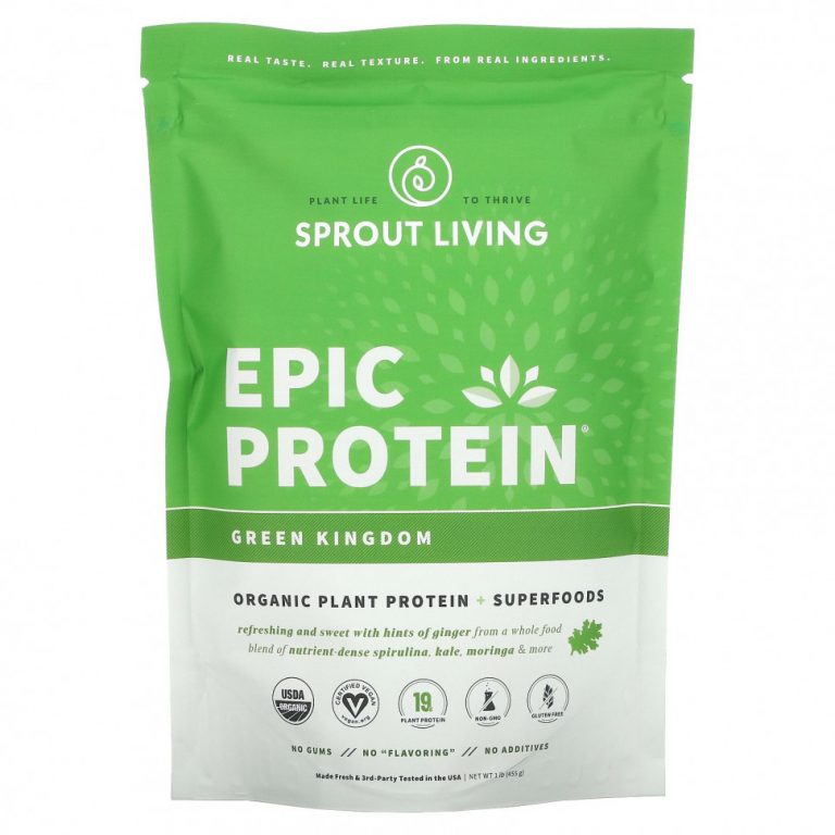 Sprout Living, Epic Protein, органический растительный протеин и суперпродукты, Green Kingdom, 455 г (1 фунт)