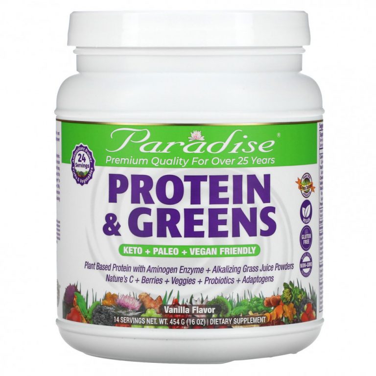 Paradise Herbs, белок и зелень, с ванильным вкусом, 454 г (16 унций)