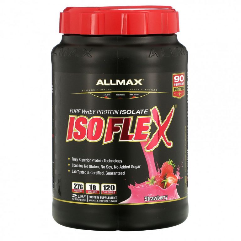 ALLMAX Nutrition, Isoflex, 100% ультрачистый изолят сывороточного протеина (WPI — Технология ионной фильтрации), клубника, 2 фунта (907 г)