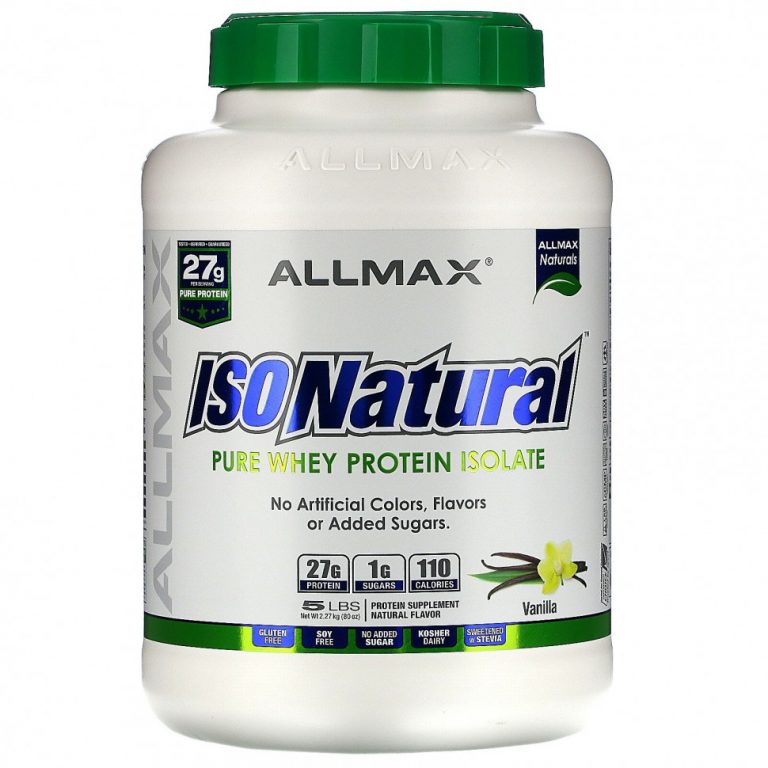 ALLMAX Nutrition, IsoNatural, 100% сверхчистый изолят натурального сывороточного белка (WPI90), ваниль, 5 фунтов (2,27 кг)