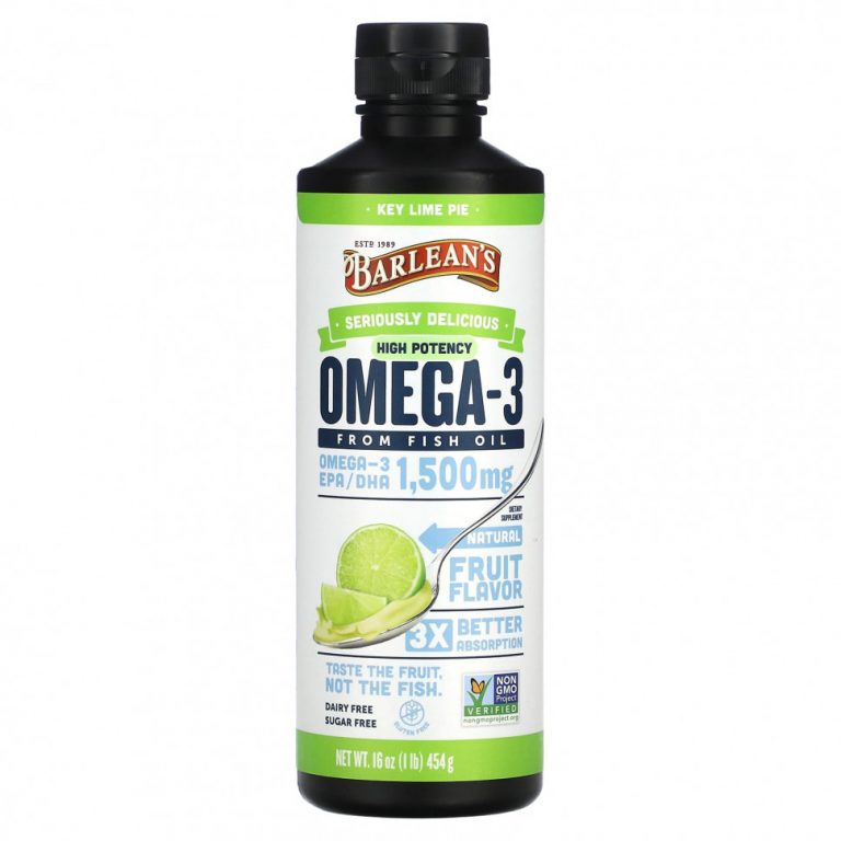 Barlean’s, Рыбий жир с омега-3, высокая эффективность, лаймовый пирог, 1500 мг, 454 г (16 унций)