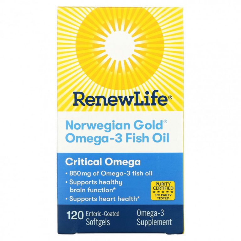 Renew Life, Рыбий жир с омега-3 Norwegian Gold, 850 мг, 120 капсул с кишечнорастворимой оболочкой