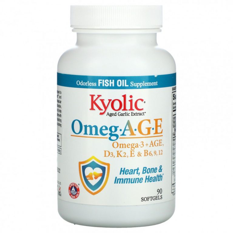 Kyolic, Omeg.AGE, омега-3 и старше, D3, K2, E и B6, 9, 12, Heart, Bone & Immune Health, 90 мягких таблеток