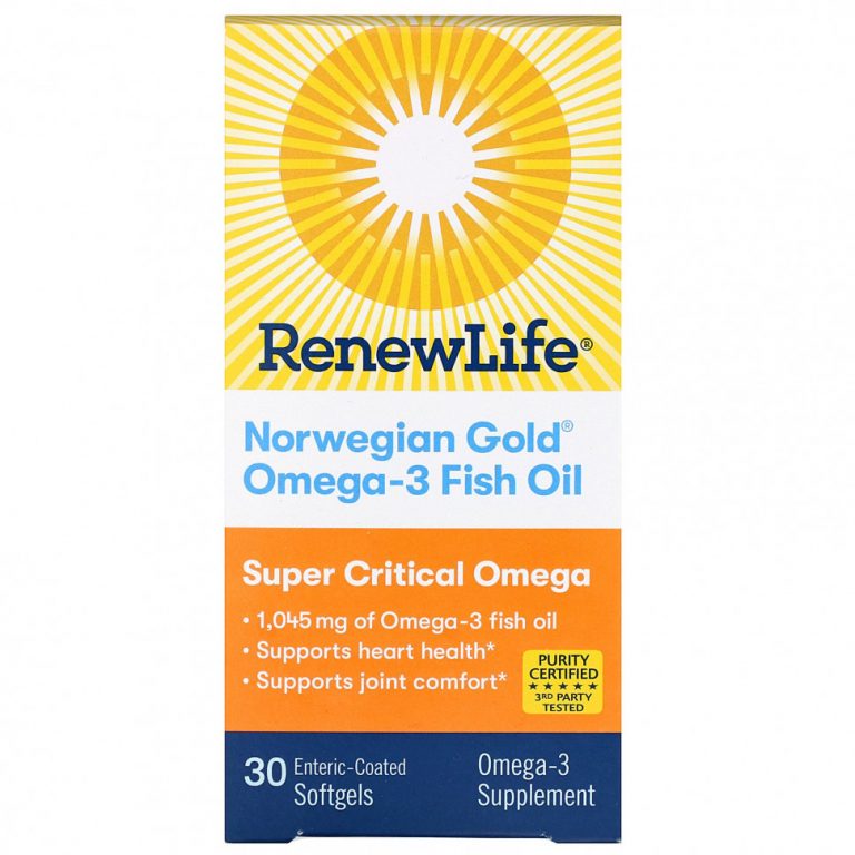 Renew Life, Рыбий жир с омега-3 Norwegian Gold, 1045 мг, 30 мягких таблеток с кишечнорастворимой оболочкой