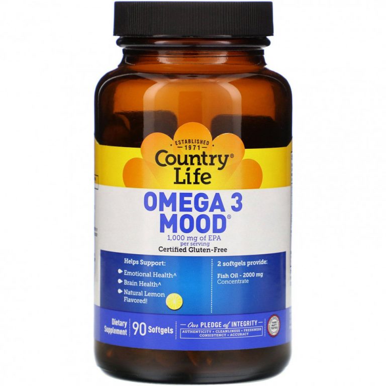 Country Life, Omega 3 Mood, натуральный ароматизатор со вкусом лимона, 90 мягких желатиновых капсул