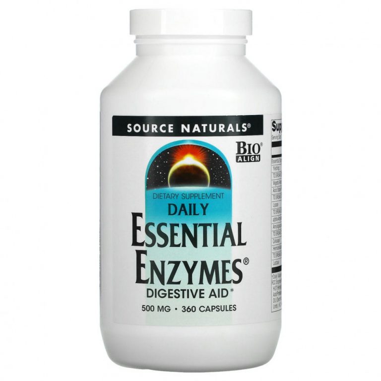 Source Naturals, Daily Essential Enzymes, пищеварительные ферменты для ежедневного использования, 500 мг, 360 капсул