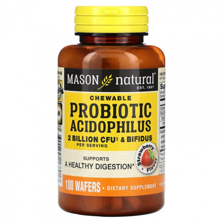 Mason Natural, Жевательные пробиотики ацидофильные и бифидобактерии, клубника, 2 млрд КОЕ, 100 вафель