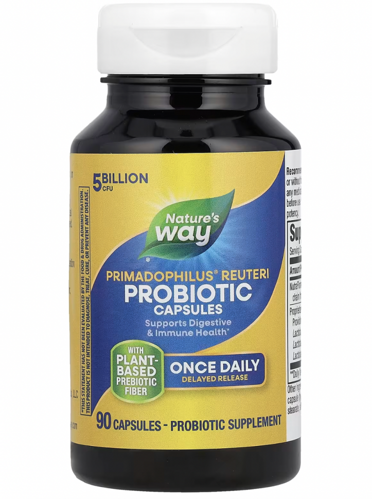 Nature’s Way, Primadophilus Reuteri, улучшенный пробиотик, 5 миллиардов КОЕ, 90 вегетарианских капсул