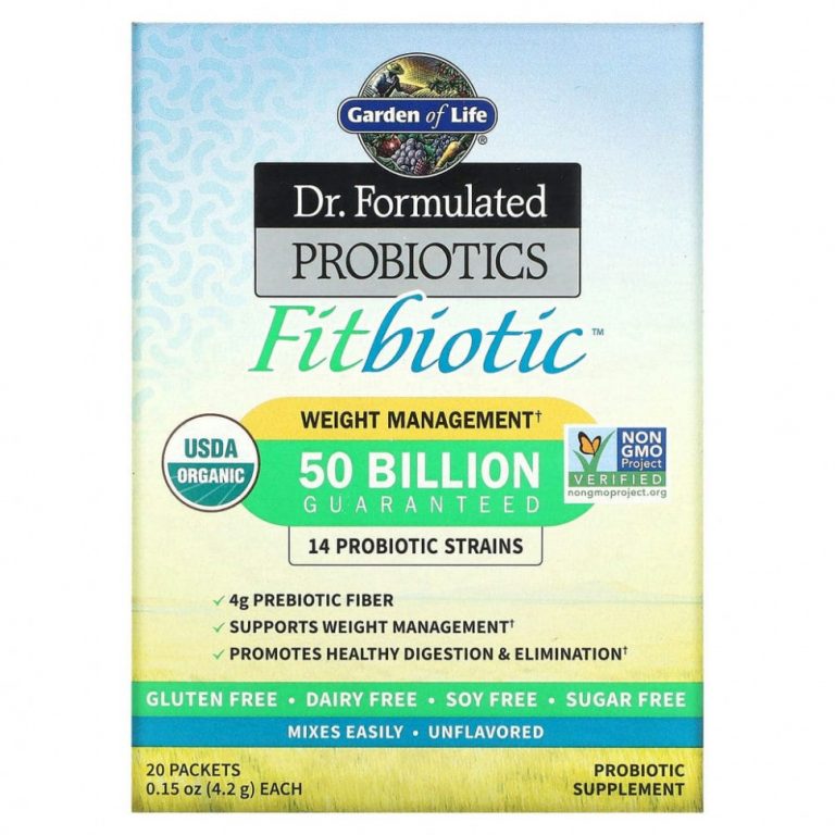 Garden of Life, Dr. Formulated Probiotics Fitbiotic, органический продукт, смесь пробиотиков, без добавок, 20 пакетиков по 4,2 г (0,15 унции)