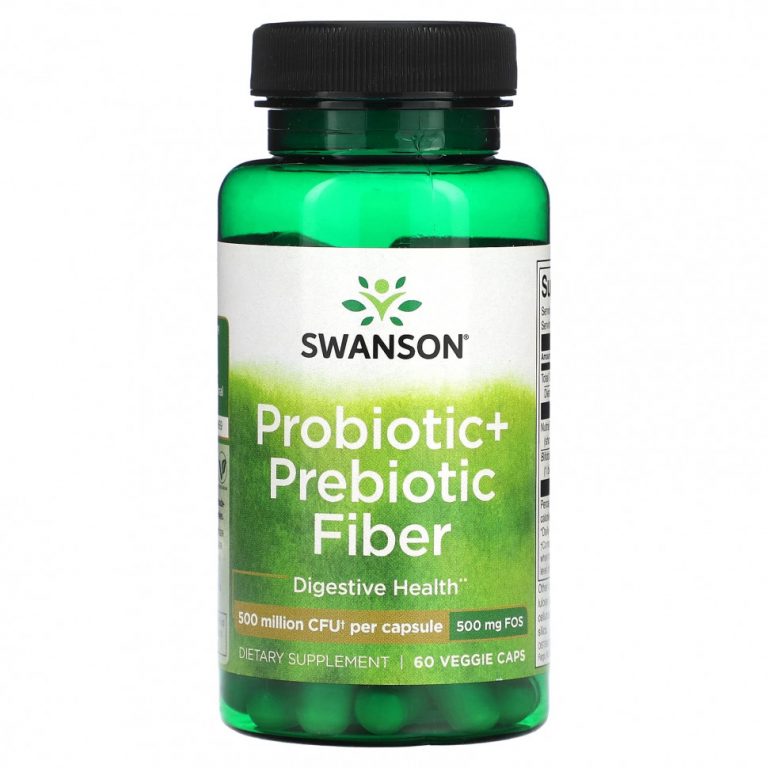 Swanson, Пробиотик + пребиотическая клетчатка, 500 млн КОЕ, 60 растительных капсул