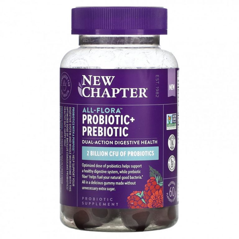New Chapter, All-Flora пробиотик + пребиотик, малина, 1 млрд КОЕ, 60 жевательных таблеток