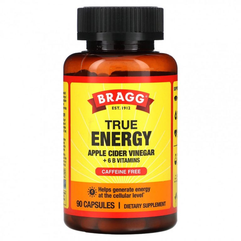 Bragg, True Energy, яблочный уксус и 6 витаминов группы B, без кофеина, 90 капсул