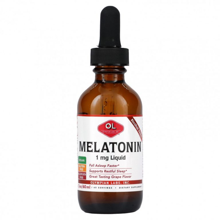 Olympian Labs, мелатонин, без спирта, виноград,1 мг, 60 мл (2 унции)