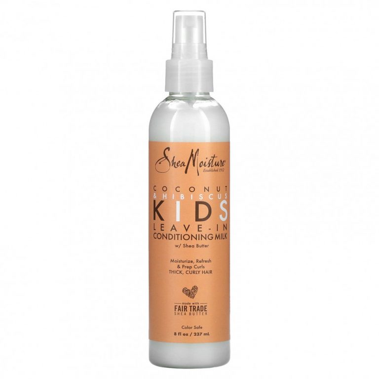 SheaMoisture, Несмываемое молочко-кондиционер для детей с маслом ши, для густых, вьющихся волос, кокоса и гибискуса, 237 мл (8 жидк. Унций)
