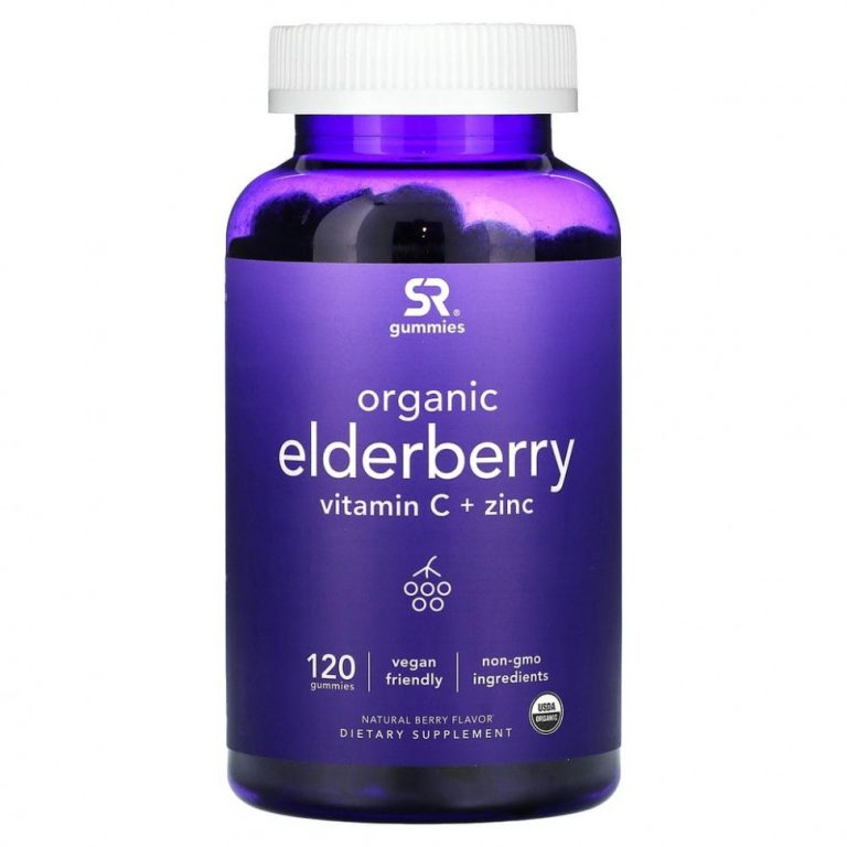 Sports Research, Органическая бузина, витамин C + цинк, натуральные ягоды, 120 жевательных таблеток