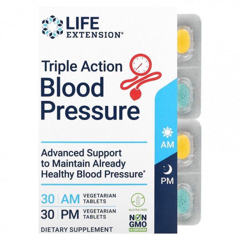 Life Extension, Triple Action для измерения артериального давления, утром / вечером, 2 упаковки, по 30 вегетарианских таблеток