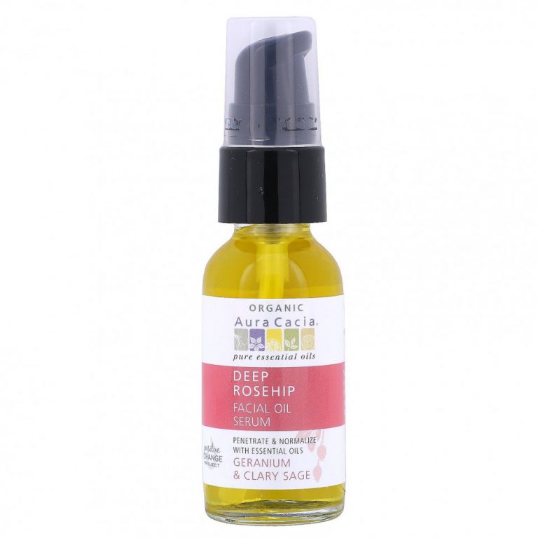 Aura Cacia, Органическая сыворотка для лица с эфирным маслом шиповника, герань и шалфей, 1 жидкая унция (30 мл)
