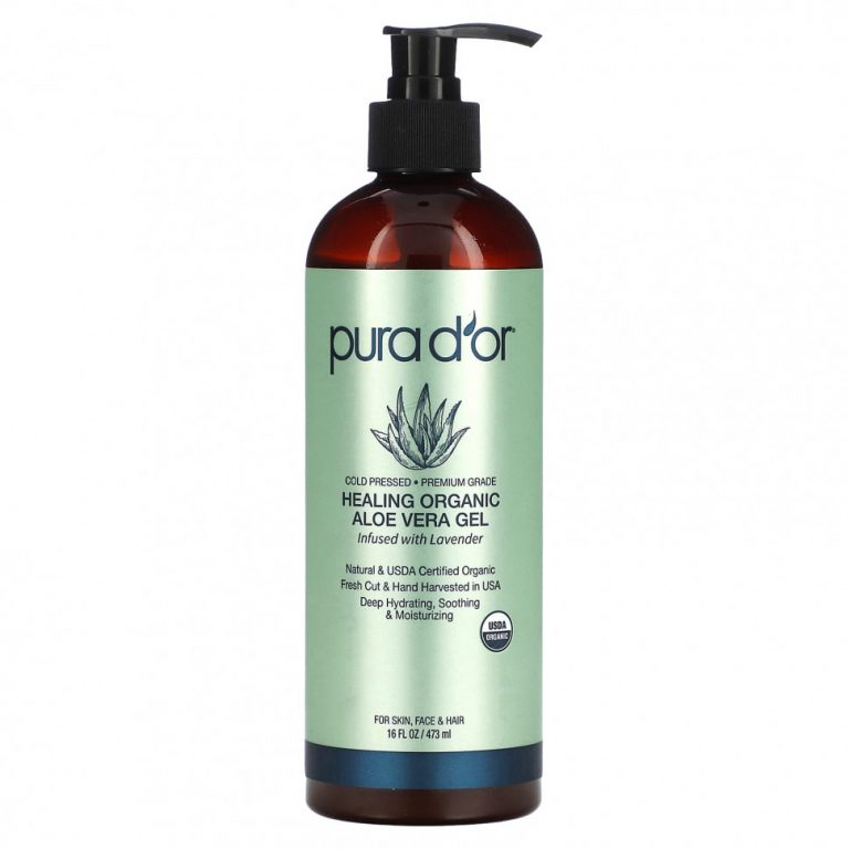 Pura D’or, Целебный органический гель алоэ вера, с добавлением лаванды, 473 мл (16 жидк. Унций)
