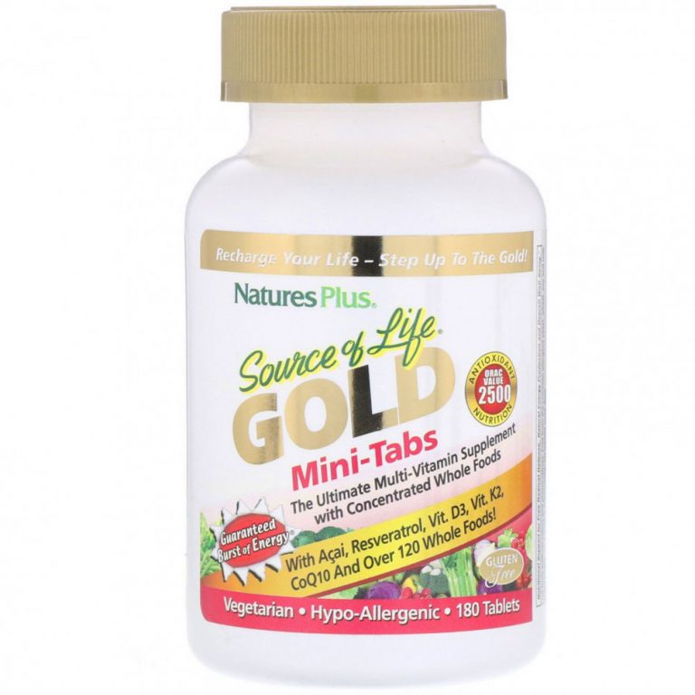 NaturesPlus, Source of Life, Gold, мини-таблетки, мощная мультивитаминная добавка, 180 таблеток