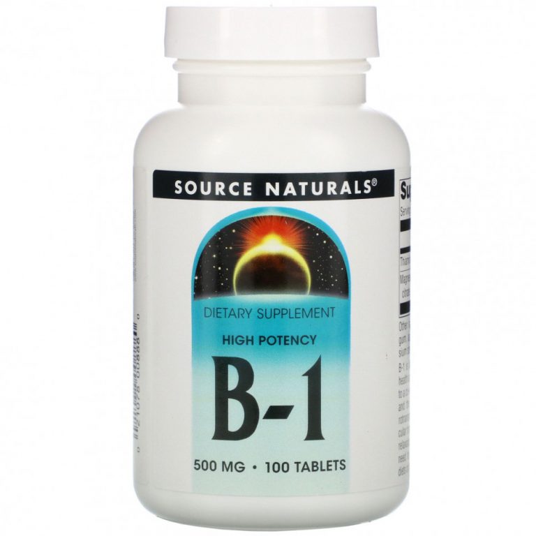 Source Naturals, B-1, высокая эффективность, 500 мг, 100 таблеток