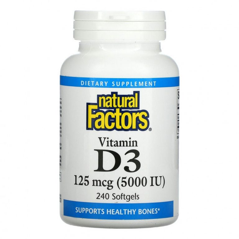 Natural Factors, Витамин D3, 125 мкг (5000 МЕ), 240 мягких таблеток