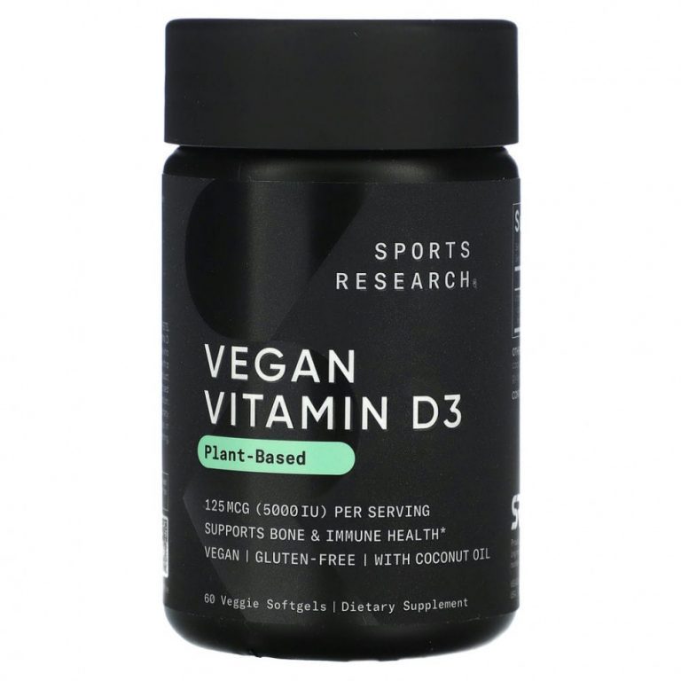 Sports Research, витамин D3 для веганов, 125 мкг (5000 МЕ), 60 вегетарианских мягких таблеток