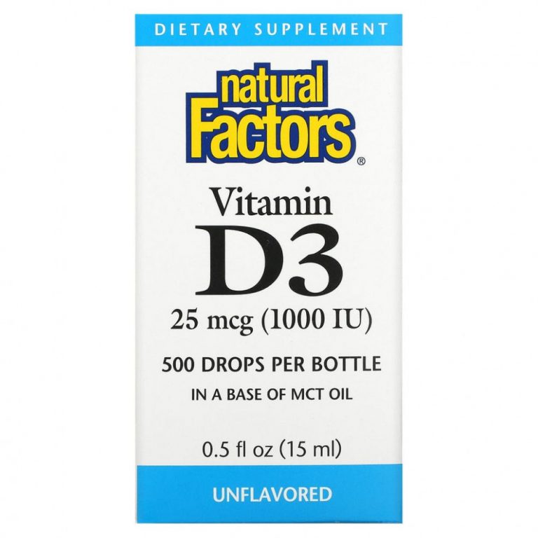 Natural Factors, Витамин D3 в каплях, без ароматизаторов, 25 мкг (1000 МЕ), 15 мл (0,5 жидкой унции)