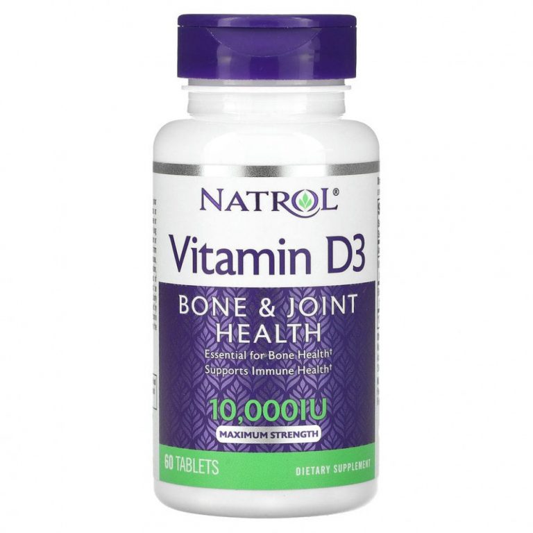 Natrol, витамин D3, здоровье костей и суставов, максимальная сила действия, 10 000 МЕ, 60 таблеток