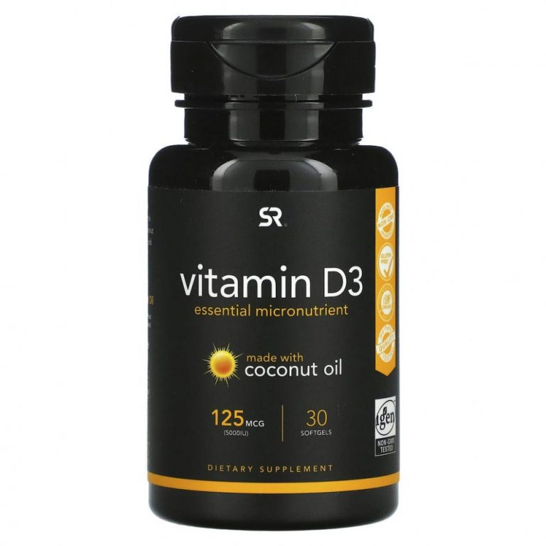 Sports Research, витамин D3 с кокосовым маслом, 125 мкг (5000 МЕ), 30 мягких таблеток